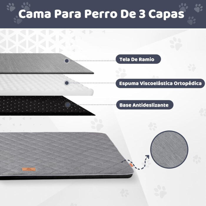 la superficie de esta cama de perro está hecha de ramio de alta calidad, que ofrece una excelente transpirabilidad. Esto ayuda a mantener la Cama para mascotas impermeable seca y cómoda, evitando la humedad y el crecimiento bacteriano. Además, hay una membrana impermeable en la parte inferior para garantizar que el relleno de espuma permanezca seco